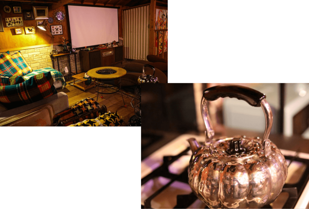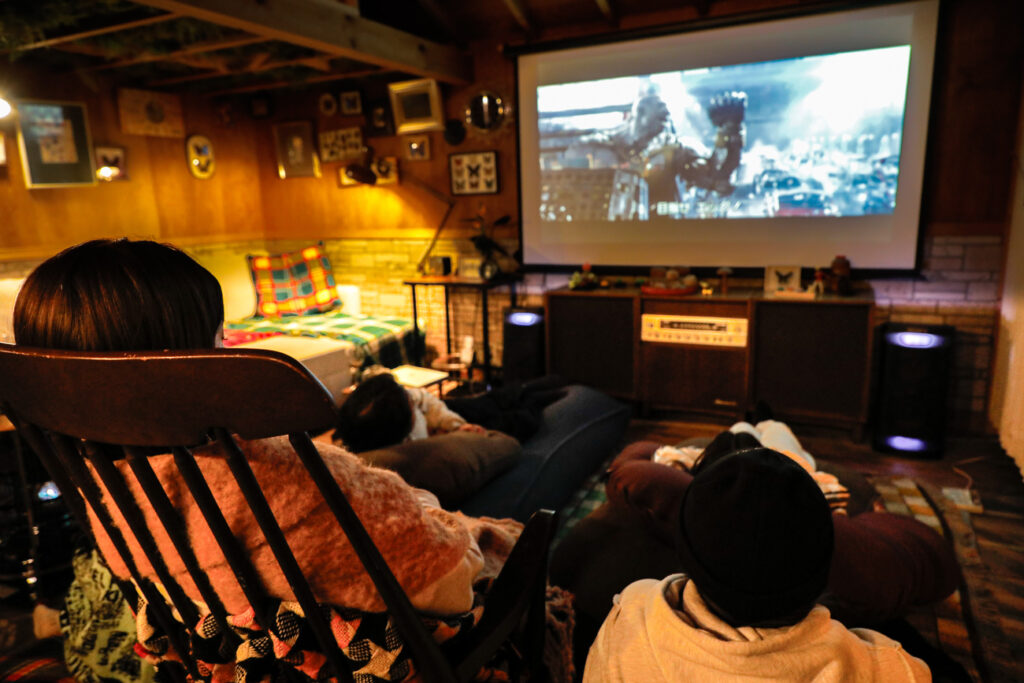 • 大画面での動画視聴: 施設に完備されたプロジェクターとWiFiを活用し、NetflixやYouTubeを投影可能。あま猫さんの最新動画を鑑賞しながら、撮影の裏側に想いを馳せる「上映会オフ」が叶います。