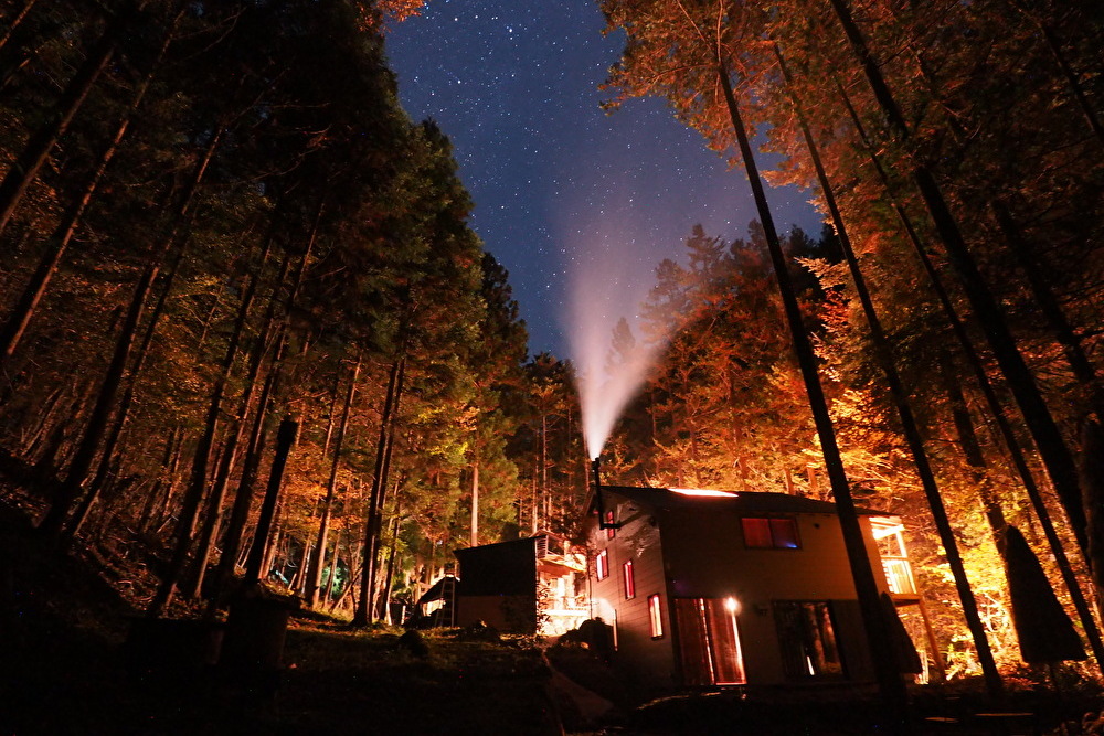 季節ごとに表情を変える檜原村の自然と、温かな木の温もりに抱かれたロッジ。 今、この瞬間も、奥秋川は変わらぬ音を立てて流れています。